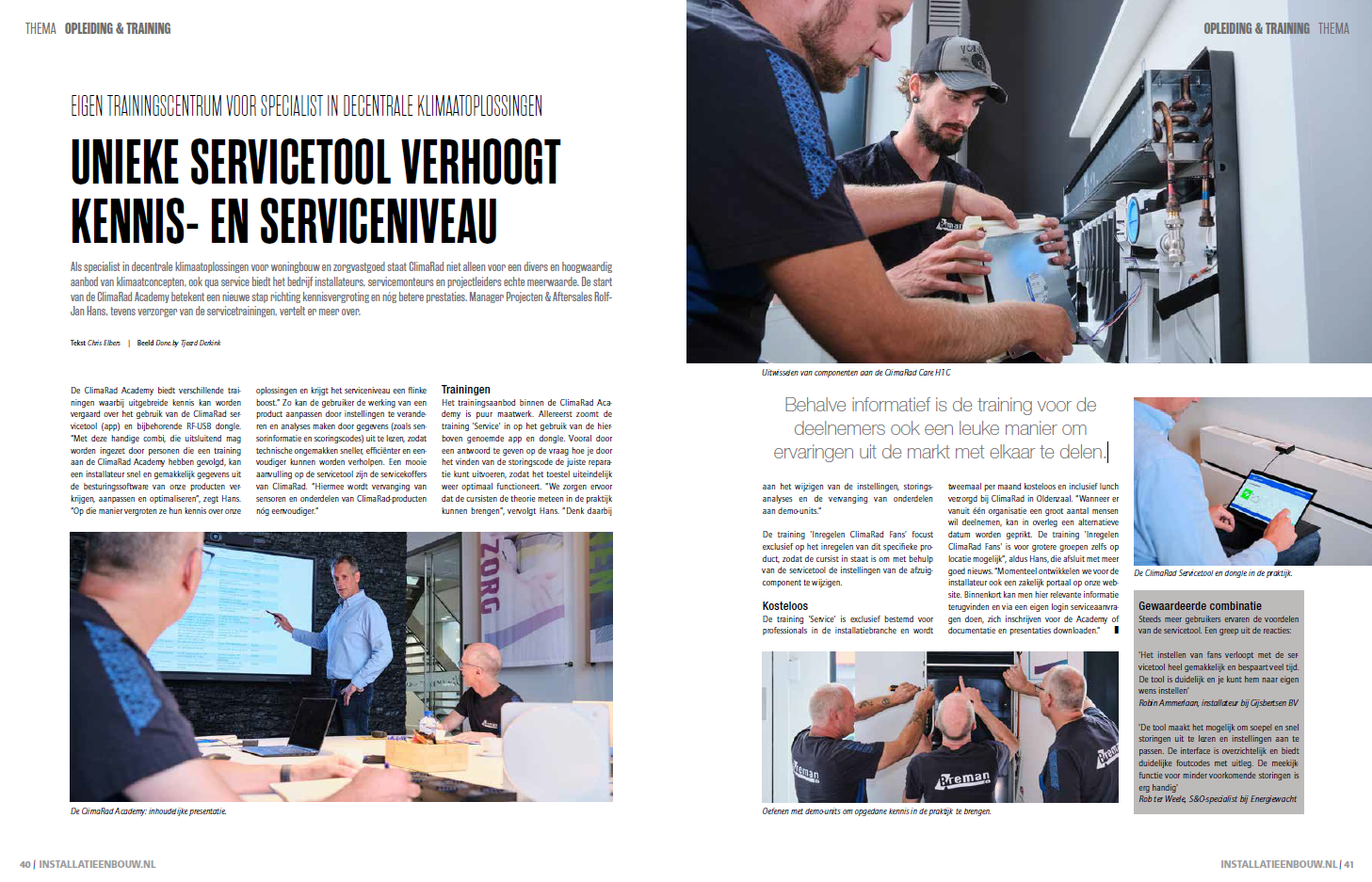 De training 'Service' is exclusief bestemd voor professionals in de installatiebranche en wordt tweemaal per maand kosteloos en inclusief lunch verzorgd bij ClimaRad in Oldenzaal. âWanneer er vanuit één organisatie een groot aantal mensen wil deelnemen, kan in overleg een alternatieve datum worden geprikt. De training 'Inregelen ClimaRad Fans' is voor grotere groepen zelfs op locatie mogelijkâ, aldus Hans, die afsluit met meer goed nieuws. âMomenteel ontwikkelen we voor de installateur ook een zakelijk portaal op onze website. Binnenkort kan men hier relevante informatie terugvinden en via een eigen login serviceaanvragen doen, zich inschrijven voor de Academy of documentatie en presentaties downloaden.â