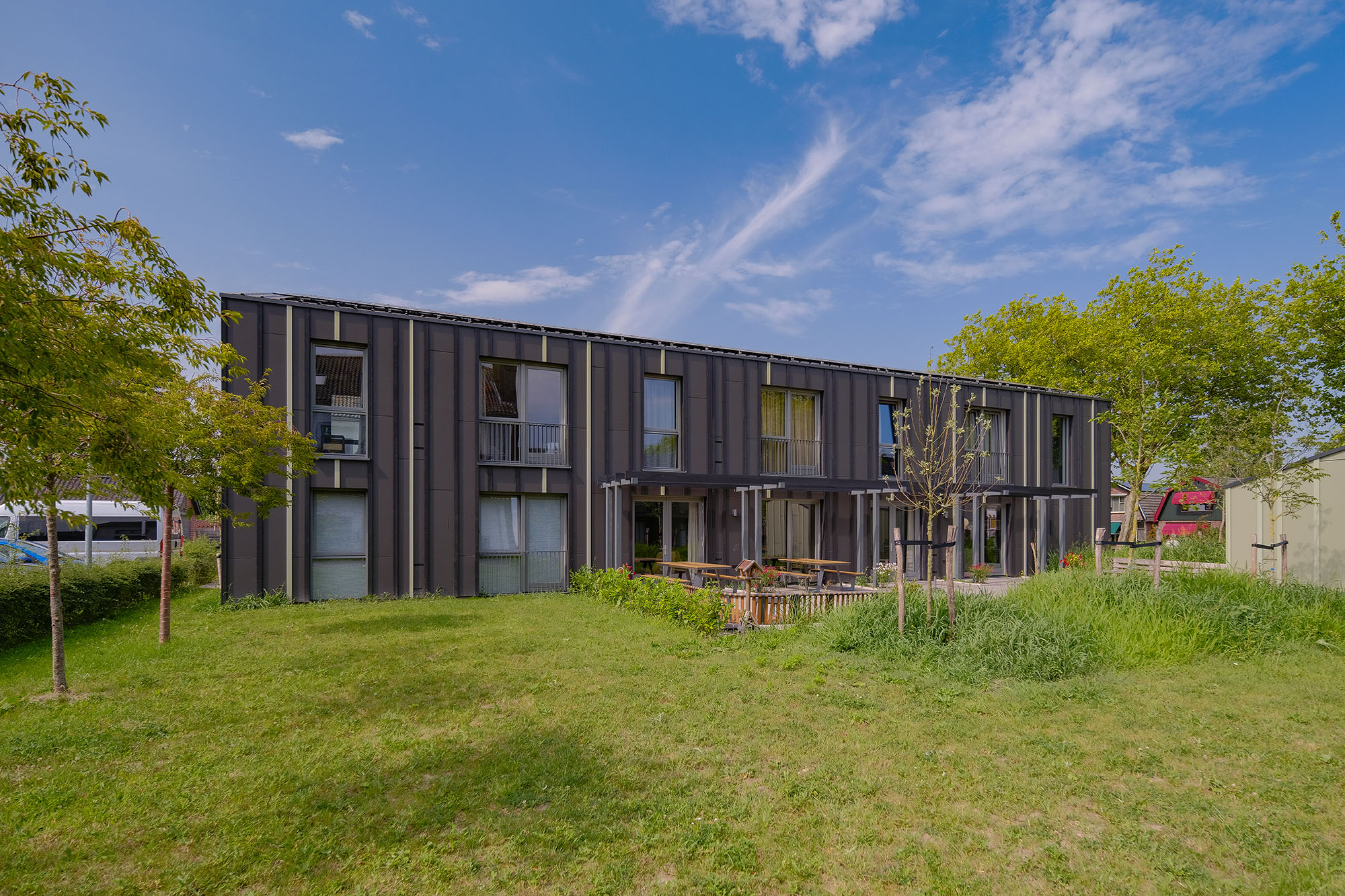 Het gebouw bestaat uit negen appartementen, elk voorzien van een eigen badkamer en slaapkamer. Bewoners delen gemeenschappelijke ruimtes zoals een woonkamer, woonkeuken en diverse voorzieningen.