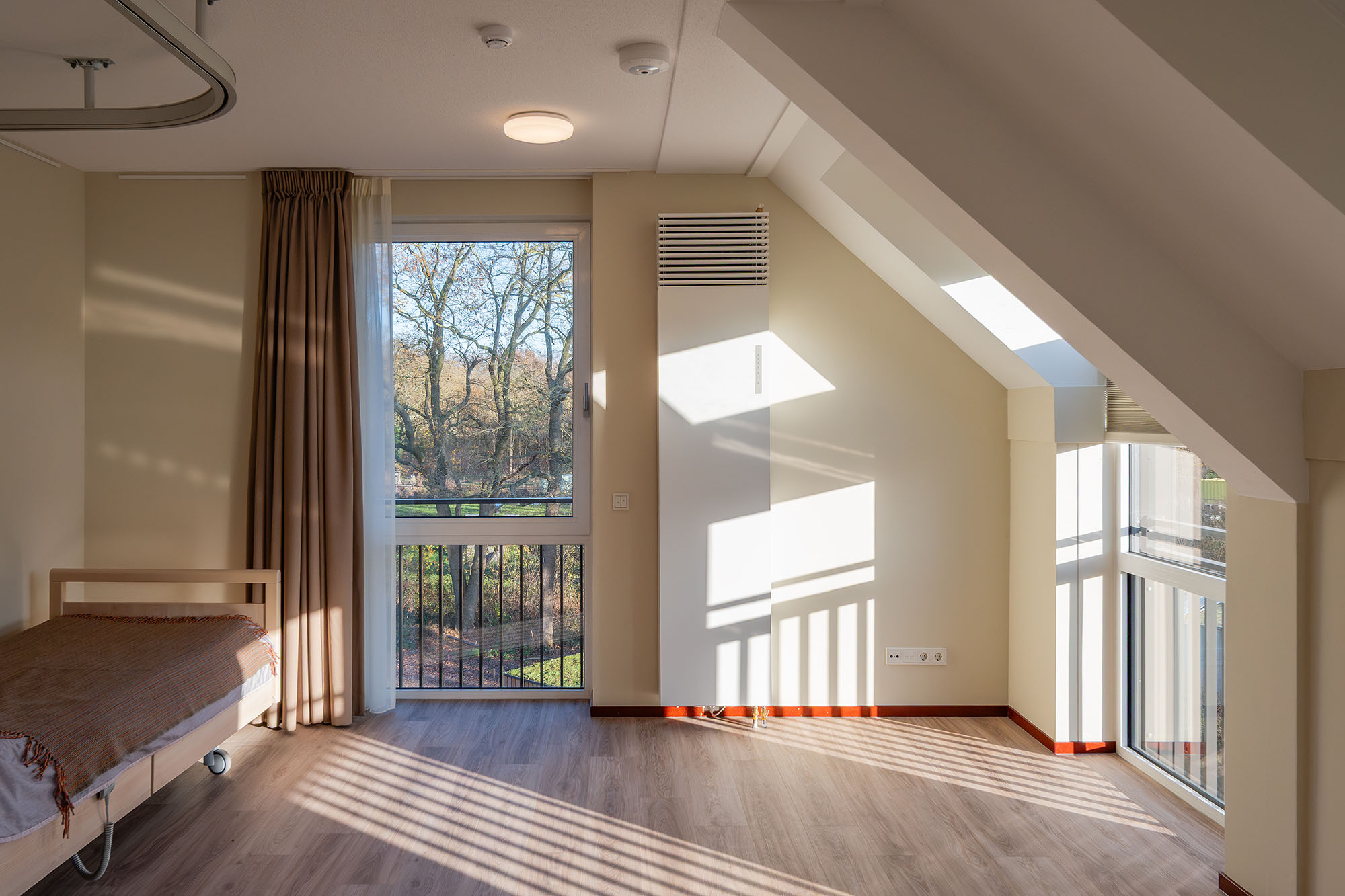 In dit gebouw is gekozen voor de ClimaRad Comfort Solution. De ClimaRad Ventura V1C zorgt in de zorgkamers en gezamenlijke woonkamers ervoor dat vervuilde lucht wordt afgevoerd en schone lucht wordt toegevoerd via de gevel. De benodigde ventilatie wordt bepaald door verschillende sensoren (CO2, luchtvochtigheid en temperatuur) die de luchtkwaliteit in de woning meten. Door de ingebouwde convector kan de unit naast ventileren ook actief verwarmen en koelen. Bewoners hebben hierdoor het hele jaar door een comfortabel, veilig en gezond binnenklimaat.