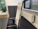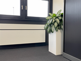 De 10 kantoren in het gebouw zijn alle uitgerust met 1 of enkele ClimaRad ventilatie-units zoals de ClimaRad Care H1C en de ClimaRad Vita H1C-S die automatisch voldoende frisse lucht toevoeren. Doordat de decentrale ventilatie-units zijn uitgerust met sensoren die constant de luchtkwaliteit meten en een warmteterugwinning systeem dat ervoor zorgt dat de toegevoerde frisse lucht aangenaam wordt voorverwarmd, heerst in de kantoren altijd een goed werkklimaat en wordt bovendien bespaard op de energierekening. Vanwege de bijzondere, spiegelende muurafwerking aan de buitenzijde van het pand konden de muurdoorvoeren niet worden afgewerkt met standaard muurroosters, zodat voor een speciale, esthetisch fraaie oplossing is gekozen, waarbij de muurdoorvoeren in het kalf zijn geïntegreerd (zie foto).