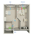Bei der ClimaRad Smart Supply-Lösung wird der Wohnraum in (Pflege-)Wohnungen durch ein dezentrales Lüftungsgerät belüftet, das saubere, vom Wärmerückgewinnungssystem vorgewärmte Luft zu- und unsaubere Luft abführt.