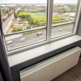 The selection of heat recovery systems was subject to a number of conditions: suitability for high-rise projects and noise requirements due to the location on the A13 motorway. All ClimaRad heat recovery units come standard with soundproofing ventilation devices to prevent noise from outside penetrating inside through the air inlet and exhaust openings. As a result, the units can handle very high exterior noise levels. Thanks to a built-in counterflow heat exchanger, the heat from the exhausted indoor air is also efficiently used to preheat fresh outdoor air. As a result, the ventilation system operates with high energy efficiency and drafts are not an issue.