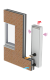 The ventilation unit supplies clean air from outside via a duct in the facade. The heat exchanger ensures the filtered outdoor air is preheated when it is blown into the room. Polluted indoor air is filtered and exhausted via the second duct in the outer facade. The reuse of heat by the exchanger provides the user with significant energy savings.