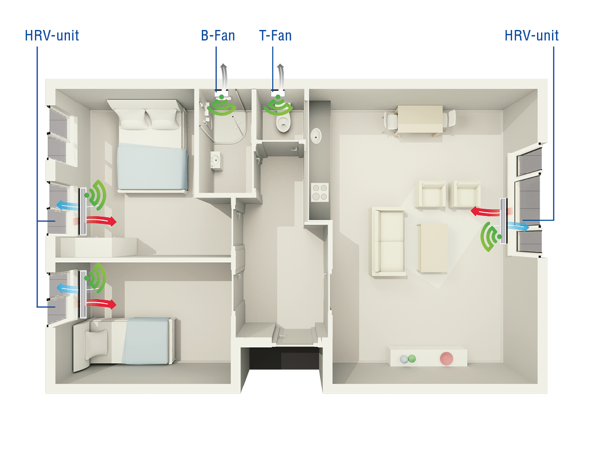 * A decentralised ventilation system controls the indoor climate per room. Read more about decentralised ventilation on our website.