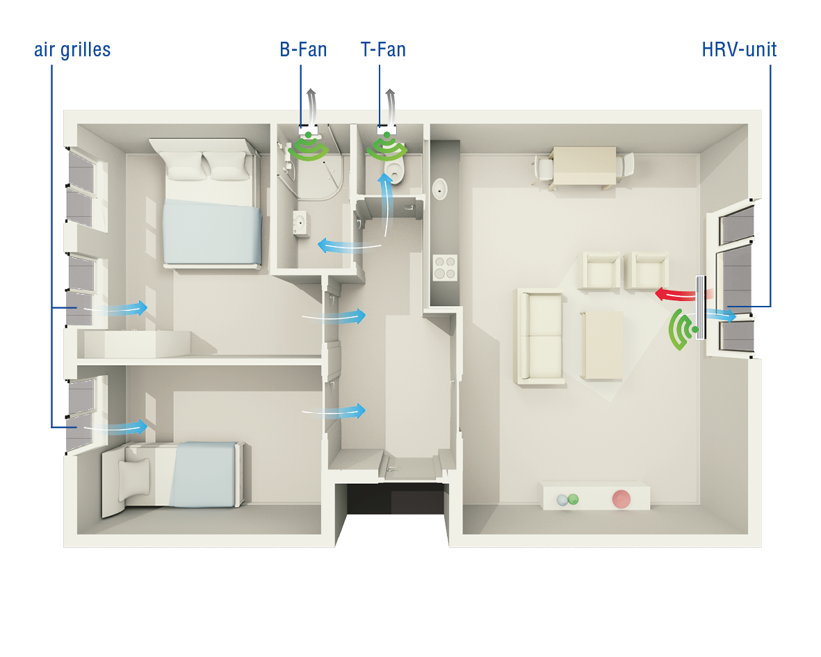 * With a decentralised ventilation system, the indoor climate of each room is controlled independently. Read more about decentralised ventilation on our website.