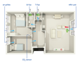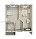 With the ClimaRad Smart Supply Solution, the living room in (care) homes is ventilated by a decentralised ventilation unit that supplies clean air (preheated by the heat recovery unit) and removes polluted air.